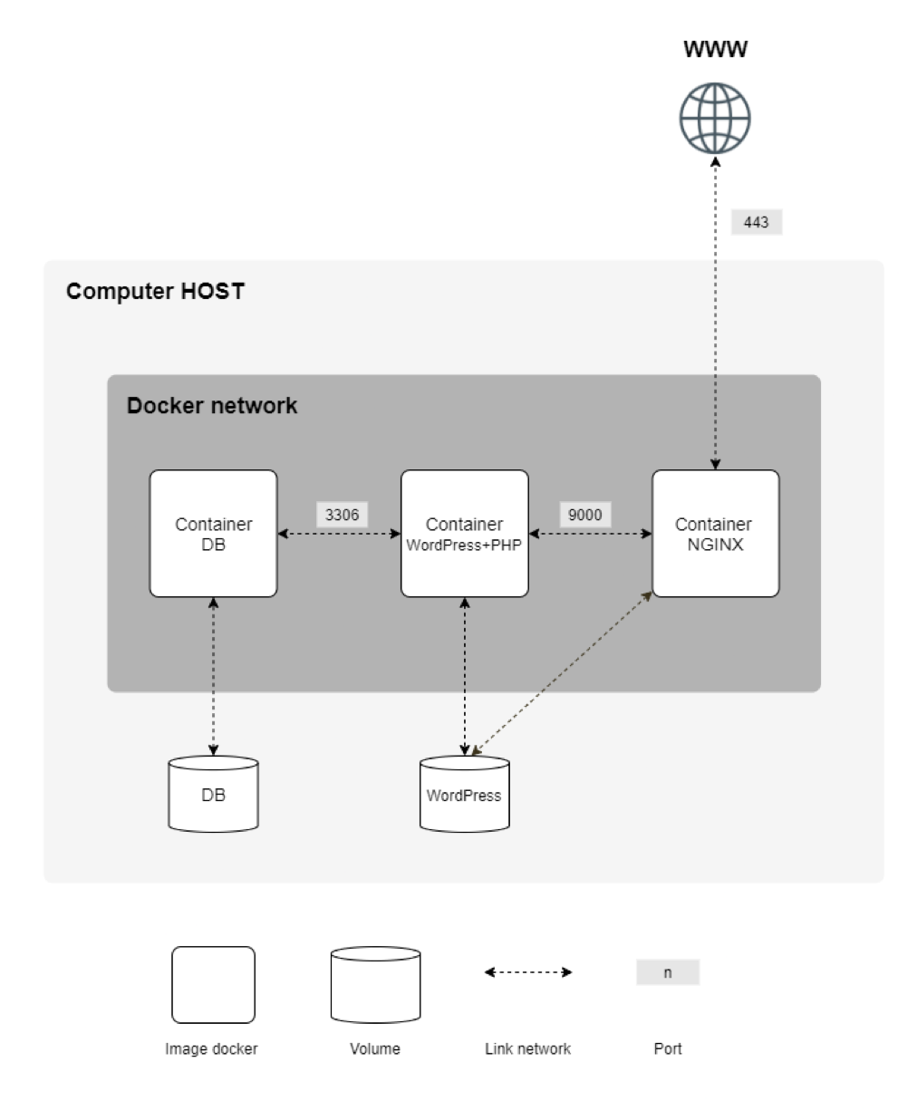 Dans le cas d’Inception, nous allons stocker les dossiers de MySQL se trouvant dans  /var/lib/mysql  et WordPress dans  var/www/wordpress . Ceux sont les paths que j’indique après la ligne volume. Encore une fois c’est le sujet qui nous le demande.